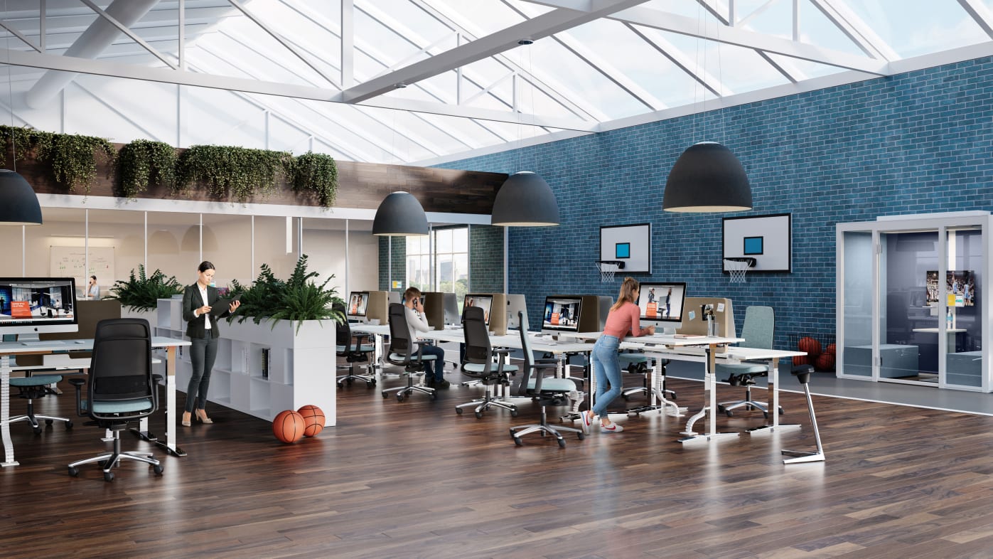 More movement at work: You can support your muscles and prevent tension at your desk, too. TALO.S is very easy to adjust and permits healthy work posture both standing and sitting.