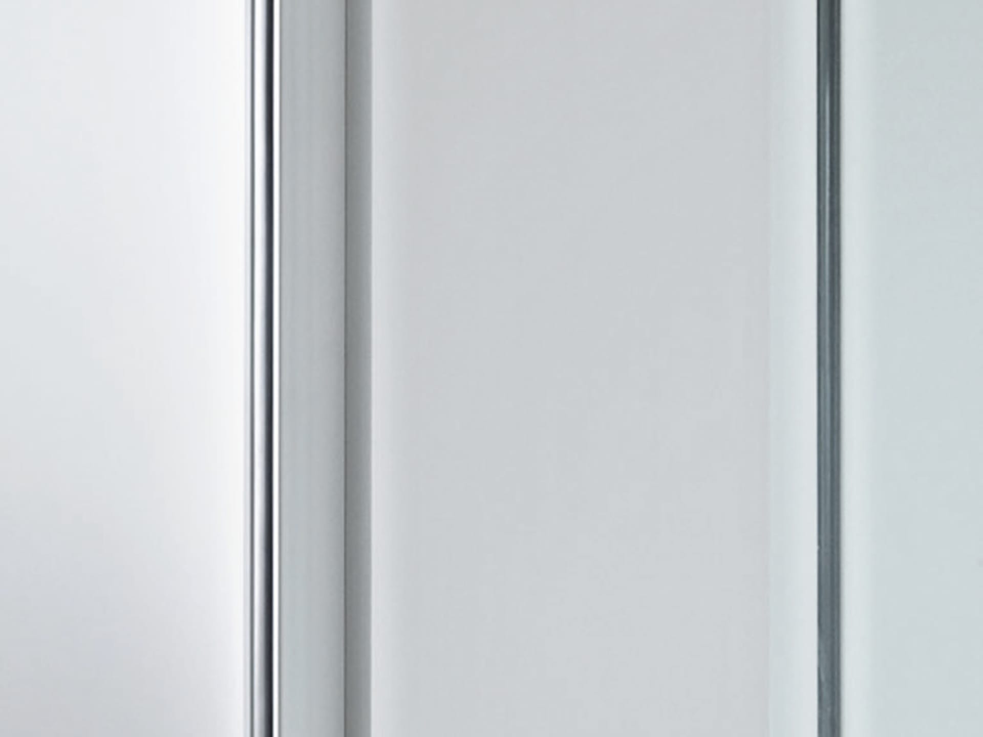 Generous glass area with transparent glazing join, sliding door with full-width push handle, anodised aluminium.