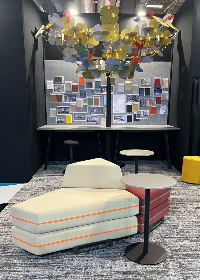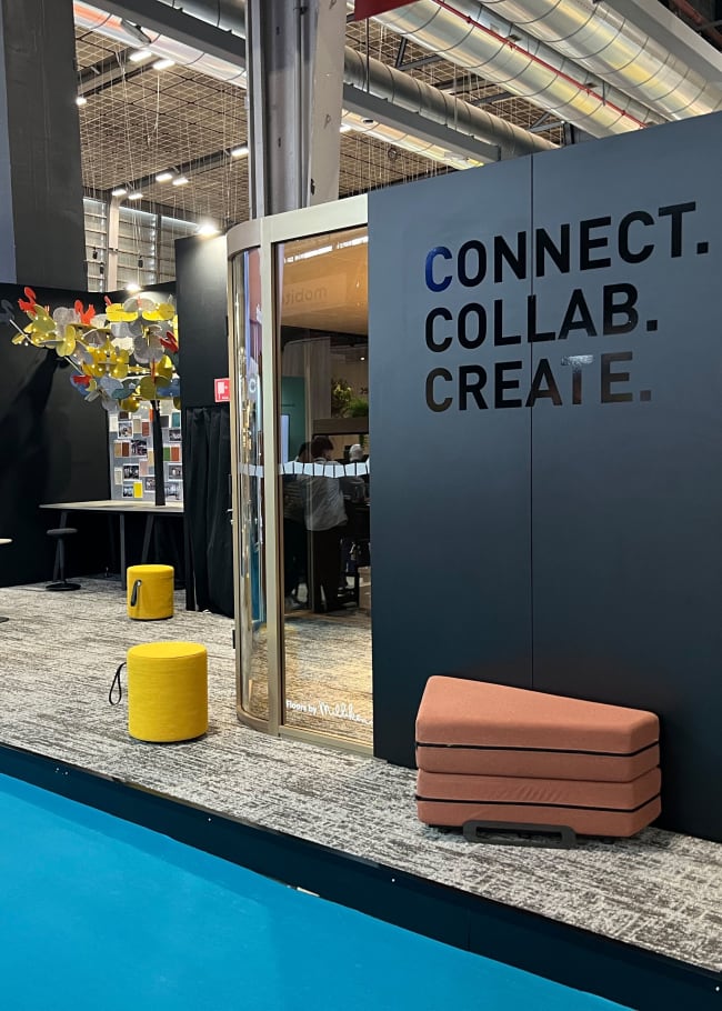 Le stand était divisé en trois espaces d’expérience clairement définis – CONNECT, COLLAB et CREATE – reflétant ainsi les principaux modes de travail des bureaux modernes : des échanges informels à la collaboration concentrée, en passant par l’inspiration et le développement d’idées. Cela a permis de découvrir à quel point les environnements de travail peuvent s’adapter avec souplesse à différentes exigences.