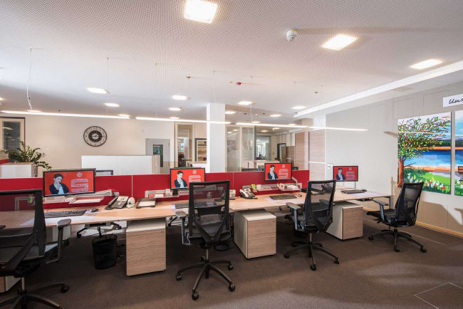 Horst Neumaier se montre très satisfait du résultat. La modernisation fait du bien à l’image de marque de la Sparkasse. Elle se présente maintenant sous un jour plus ouvert et moderne, elle est mieux armée pour les tâches les plus diverses. Le style d’ameublement a fait quasi l’unanimité auprès du personnel. En fin de compte, la Sparkasse tire profit de cette nouvelle présentation qui a même contribué à démarcher de nouveaux clients.
